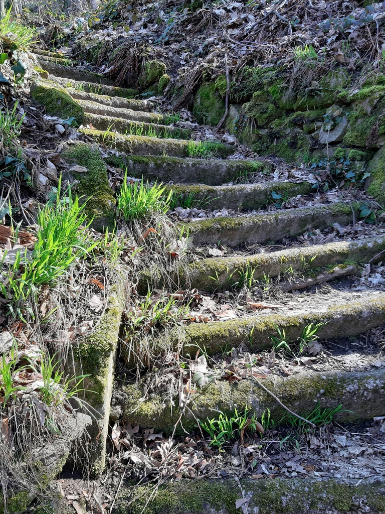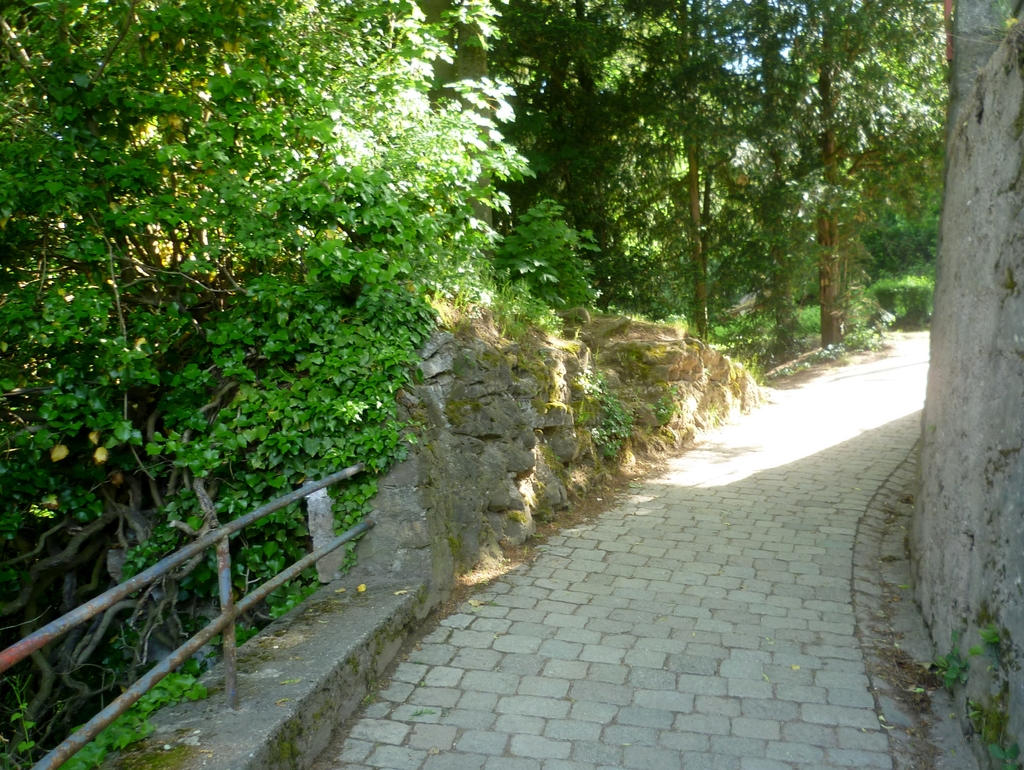 Oberhalb des Stadtgartens erhebt sich der Schlossberg. Es gibt dort einen breiten Weg, der eher unangenehm ist. Unter- oder oberhalb dieses Weges gibt es jedoch viele schmale Wege, die barfuß die reinste Wonne sind! Manche sind uralt.