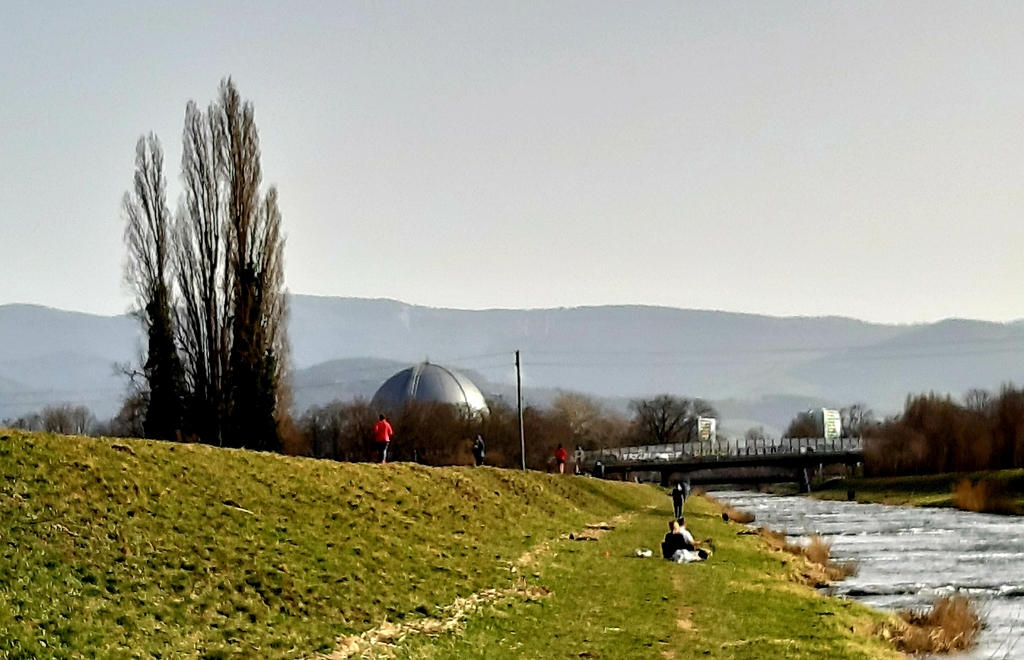 Freiburg liegt an der Dreisam, an deren Ufer man wunderbar entlang spazieren kann. Aber man sollte die der Innenstadt zugewandten Seite wählen, die andere Seite ist den Radfahrern vorbehalten. Leider hört man den Lärm einer Schnellstraße. Jedoch je weiter man stadtauswärts kommt, desto leiser ist der Lärm zu hören, bis er ganz verstummt!
