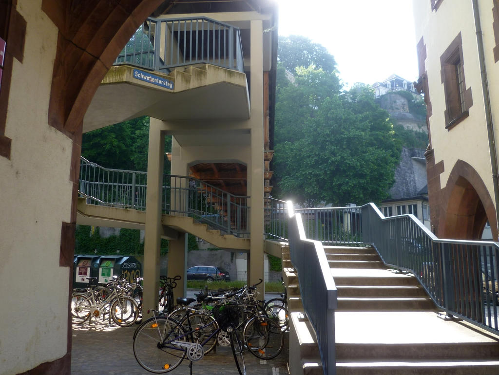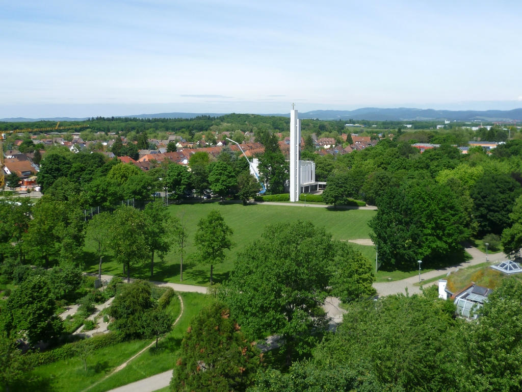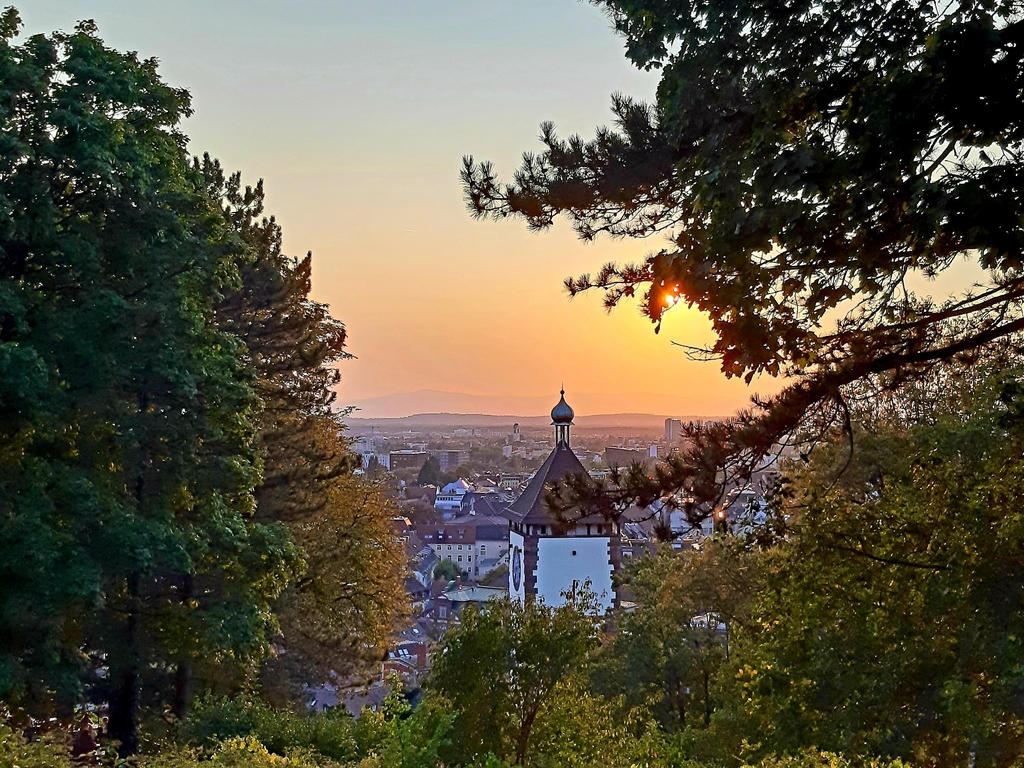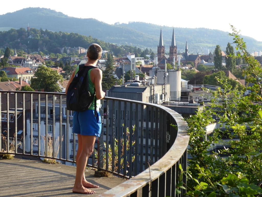 Ganz oben befindet sich der Schlossbergturm, von dem man einen schönen Rundblick über die gesamte Stadt und zum Schwarzwald hin hat. Auch dorthin führen viele kleine schmale Wege, die meisten davon sind barfußfreundlich.