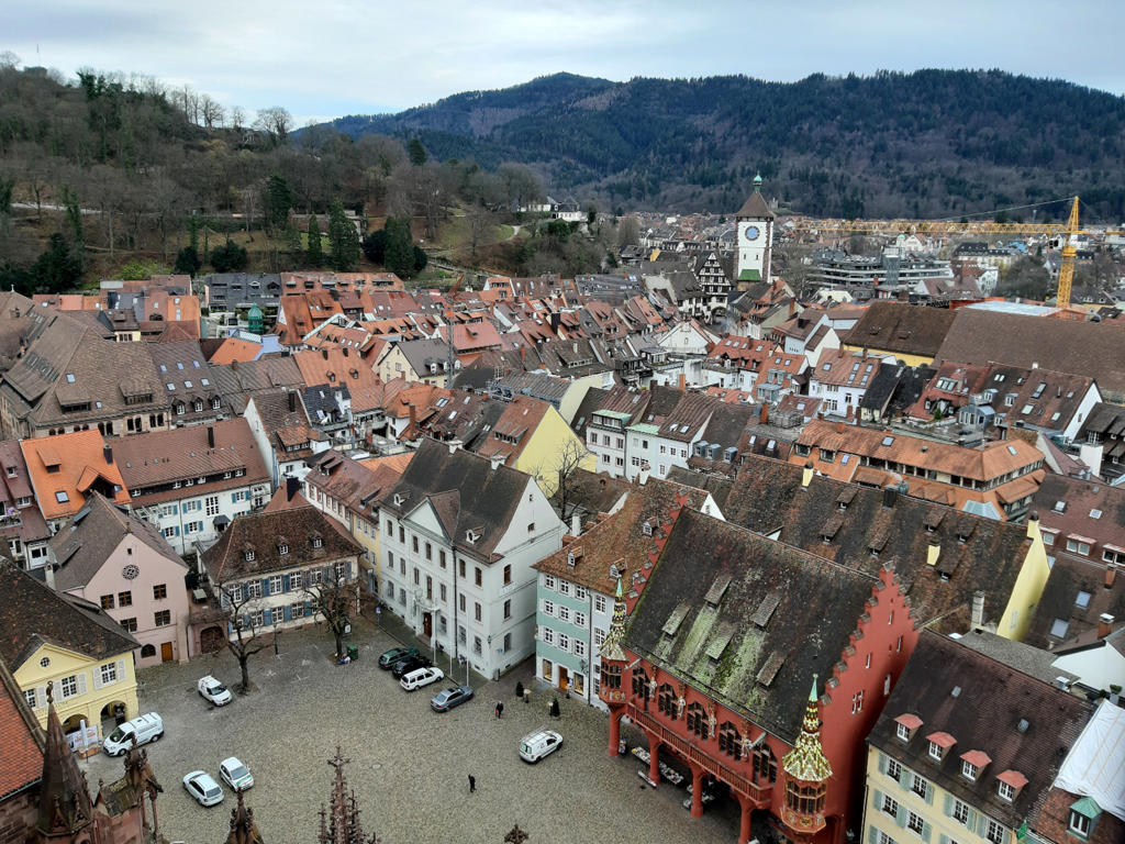 Freiburg im Breisgau mit seinem mediterranen Klima liegt im Dreiländereck Deutschland, Frankreich und der Schweiz, jeweils nur ca. 60 km von den Grenzen entfernt.