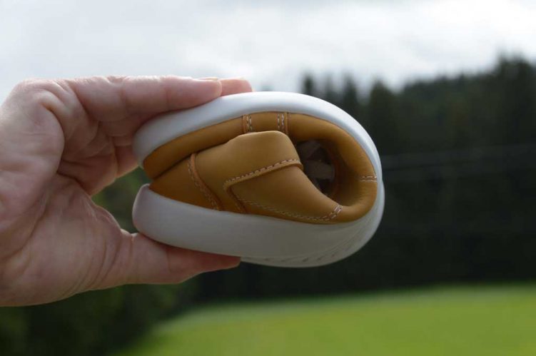 Den Ahinsa Pura 2.0 konnten wir nur unter großer Kraftanstrengung rollen. Die Sohle ist einfach nicht flexibel genug dafür. Vielleicht ändert sich das, je länger man die Schuhe trägt. Während der Testphase war dies jedoch nicht möglich. Sie lassen sich aber leicht einmal falten und ergeben bei meiner Größe (41) ein Packmaß von ca. 13x13x7cm.