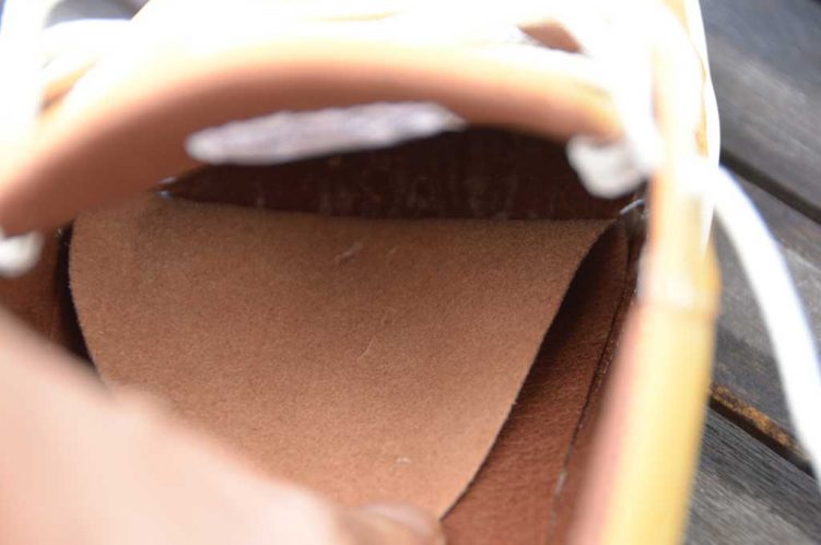 Die Nähte und Materialzuschnitte wurden tadellos verarbeitet. Der Innenbereich, Übergang von Zehenkappe zur Sohle, verläuft ohne störende Nähte oder Unebenheiten. Anders ist das im Knöchelbereich, der beidseitig extrem störende Nähte aufweist.