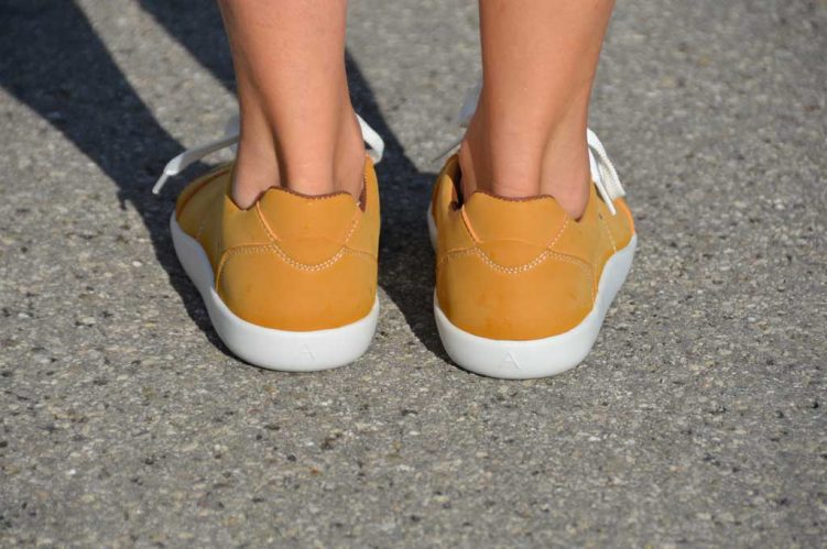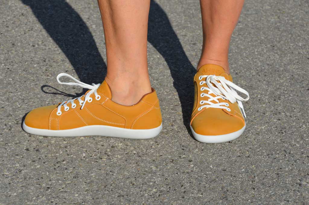 Beim Auspacken riecht es angenehm. Von der Optik her unterscheiden sich die Ahinsa Barfußschuhe kaum von anderen Halbschuhen.
