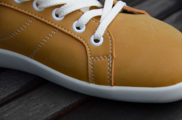 Das vegane Obermaterial erinnert etwas an Nubukleder, doch fehlt dem Material etwas die Weichheit des Leders. Die Pura 2.0 sehen stilvoll aus, was sie für Büro und Stadt interessant macht.