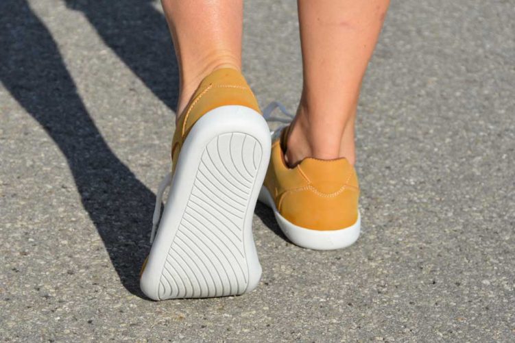 Die insgesamt 5mm starke Sohle aus Lifo+ (deutsche Herstellung) fühlt sich durch ihre Steifigkeit unter dem Fuß deutlich dicker an und auch ein Abrollen ist nur schwer möglich. Dazu spürt man den Untergrund nicht. Das ist zwar prima für unangenehme Wegstrecken wie z.B. gesplittete Forstwege oder unsaubere Innenstädte, insgesamt hat der Schuh vom Gefühl her aber sehr wenig mit Barfuß zu tun. Daran ändert auch der fehlende Absatz nicht viel.