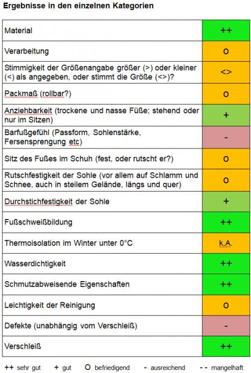Positiv ist auf jeden Fall das Materialkonzept, die Herstellung unter Einbindung regionaler Rohstoffe und die Fertigung in Familienbetrieben. Auch die sehr gute Verarbeitung der Nähte ist hervorzuheben sowie die gute Rutschfestigkeit der Sohle.